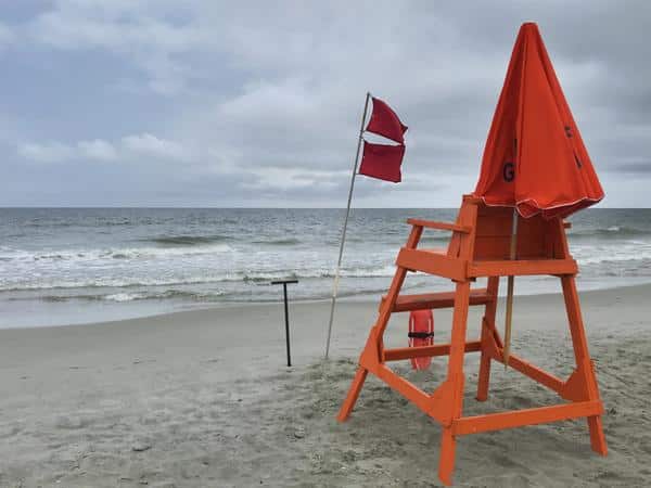 • Single red flag: High hazard with strong surf and currents